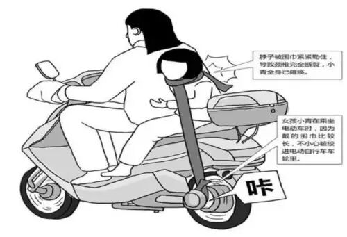 每年冬季都会有因佩戴围巾而导致的意外伤害发生,这些人都犯了同一个错误:骑车时系的围巾太长了!