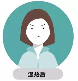 面垢油光,易生痤疮粉刺,身重困倦懈怠,大便粘滞不爽,男性阴囊潮湿,女性白带臭秽,舌红苔黄腻,脉滑数。易患痤疮、黄疸、淋症、火热等病。对气温偏高、湿热交蒸气候难适应。
