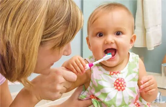 从孩子6个月起、长出第一颗牙,就要有口腔清洁的措施跟上,家长可用指套牙刷或手指缠上纱布、沾上水,帮宝宝清洁牙齿。