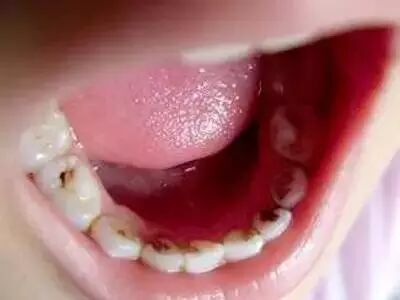 爸妈最近一次偶然掰开宝宝嘴巴,看到了一口又黑又黄的牙。