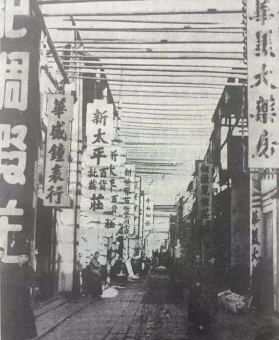 (百年前的长沙西牌楼,商户毗邻而居)